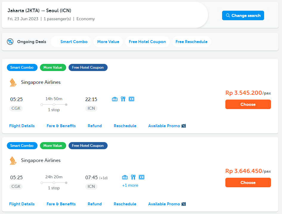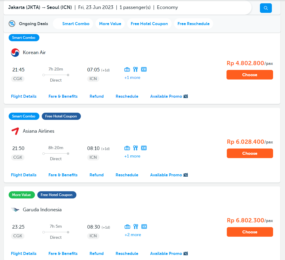 Ada dua opsi untuk penerbangan CGK – ICN;