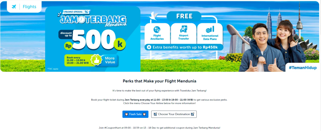 Eh sebentar deh, ada juga dong untuk tiket pesawatnya. Kalau diskon hotel setiap Jumat, kupon tambahan diskon maskapai itu setiap hari selasa dengan join live streaming-nya Traveloka pukul 7 malam. Program ini berkontribusi dalam pembelian tiket kami sekeluarga ketika adik saya menikah di Batam.